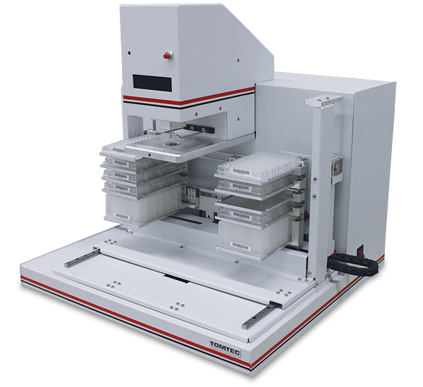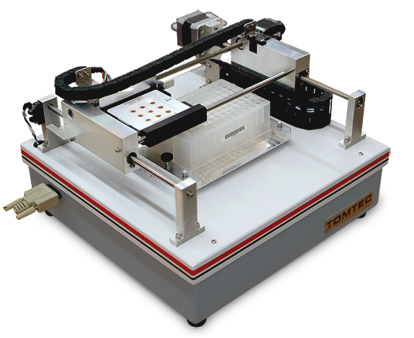 Tomtec has designed the new AutoDBS-4 to meet the growing demands of International Newborn Screening programs. With versatility in mind, the AutoDBS-4 will punch via it’s 3 or 6mm head, from any dry blood spot sample card, into a prepared microtitration plate. Up to ten 96 well sample plates may be used, with the option of two plates being deep well.